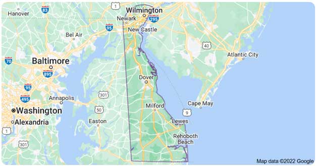 The location of Delaware in the Mid-Atlantic region of the USA. It is the 2nd most compact as well as 6th least populated state in the country, but on the other hand, it is the 6th most legion state and the entire state is split into 3 regions, the lowest variety of any state. Dover being the capital of Delaware is the largest city in Wilmington.
